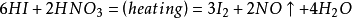 碘化氫與不同濃度的硝酸反應,把碘離子分別氧化成碘單質(zhì)和碘酸根離子: