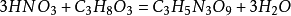 3nHNO3+ [C6H7O2(OH)3]n——→ [C6H7O2(O-NO2)3]n+ 3nH2O